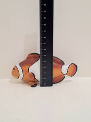 • Size and Color: Measuring 4.75 inches long and 2.5 inches tall, this model is about the size of a soda can on its side. Although anemonefish come in many different colors with many different patterns, they predominantly have an orange base color with white markings.