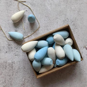 This set of thirty-six little snowflakes in varying shades of pale pastel blue and white can also be used for developing mathematical skills and thinking, and are useful as counters. Handmade from sustainably sourced wood and finished with non-toxic colours.  Grapat Mandala sets are a perfect addition to imaginative play, role play, creative picture making and story telling. The possibilities are inspiring.