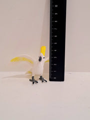 • Size and Color: Cockatoos come in many different colors based on their species, such as the Sulphur-crested cockatoo (depicted by this figurine) which has a white body and sunny yellow crest and wings. 3.75 inches long and 2 inches tall, this figurine is a touch larger than a deck of cards stood on its side.