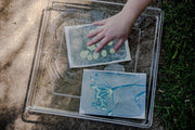 Do It Yourself Cyanotype Kit. Cyanotype is a photographic printing process, where an emulsion is painted on paper or fabric and placed in the sun to aid exposure to produce a rich cyan-blue print. This DIY kit is designed to be used within the comfort of your own home and is a fun experiment to do with young children or perfect for anyone who loves to be creative. The solution is mixed together in equal parts and applied to paper. When dry you will be able to experiment and play around printing any subject matter. A bright sunny day gives best results. Once the 8 sheets of watercolour paper have been used you will have ample more solution to paint your own paper or fabric. Included in the kit is; -30ml Type A solution -30ml Type B solution -8 sheets of A5 watercolour paper -1 paintbrush -1 syringe -Instruction booklet