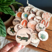 This new 20 piece story tellers set is themed with Aboriginal Australian natural elements and symbols which have been designed by Indigenous artist - @mardijbalinaand. Use this set to create your own stories.