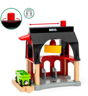 Give your BRIO World animals a nice place to stay with the 36012 Animal Barn. There’s plenty of space inside for all your animal friends as well storage area upstairs for their food. Use the hay loading function on the roof of the barn to pick up the animal food from the wagon below and move it safely in the loft. Build this train set accessory into a larger layout and you can also use the wagon to transport animals around your BRIO World.
