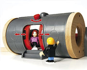 Take the metro into the city. The train keeps up with the driver – the faster it's pushed, the more light and train sound it will make. This urban metro railway set takes children into a world of play that they recognize from reality. The metro station play features are detailed with sliding doors, platform seats and passengers. Connects to all BRIO trains and the BRIO wooden railway system.