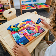 With the orient inspired and organic shapes of this set, sparkling scenes, cities and landscapes can be built. The unique variety of shapes inspires children to build new play scenes every time. This building set is a perfect complement to our Landscape Puzzle (art. no 43500) and Small Four Elements Building Set (art. no 10217).