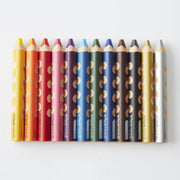 Chunky 15mm pencil with brilliant colour, easy to blend, water-soluble, extra thick break-resistant lead, ergonomic natural grip-zone and off-set slide guards for thumb index and middle fingers to support an optimal grip.
