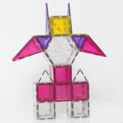 Designed for the unicorn lovers, fantasy dreamers and creative explorers, this pack is filled with delightful play possibilities. Featuring a stunning combination of glitter magnetic tiles in dazzling clear and vibrant bright colours of pink, yellow, teal and purple, plus a thoughtful selection of shapes in squares, hexagons, rectangles, triangles and trapezoids to bring your sparkly unicorn creation to life!