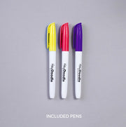 *Pack includes 1 HeyDoodle MiniMat (30x20cm), 3 HeyDoodle Markers (yellow, pink and purple) and a travel tube.