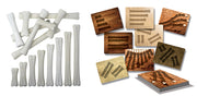 The set includes: 16 bones, two of each size: 6, 8, 10, 12, 14, 16, 18, and 20cm. 16 cards measuring 275 x 210mm