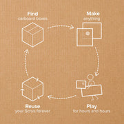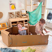 The screen-free, hands-on fun experience involves cutting, connecting, and building amazing creations from upcycled cardboard. This play will promote kids' problem solving, fine motor skills, and critical thinking.