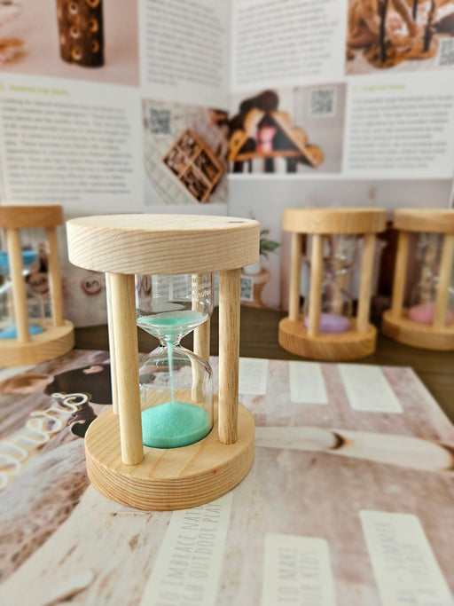 Introducing the Qtoys Wooden Sand Timers Set of 4, a beautifully crafted set designed to blend functionality with natural elegance. Each timer in t...
