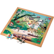 In this puzzle about the tropical forest, there are animals living in the tropical forest. You will see for instance an iguana, a leopard, a macaw, a jaguar, turtles, parasol ants, piranhas, but also orchids and a waterfall. Many new words can be learned because some animal-names are quite specific e.g. the poison frog, the red-eyed lemur and the cotton-top tamarin,