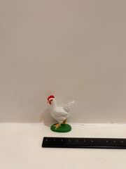 • Size and Color: This Leghorn has white feathers with a red comb and wattle, along with yellow beak and legs, all chosen for realism. It measures 2 ¼ inches tall, making it about the size of a saltine cracker.