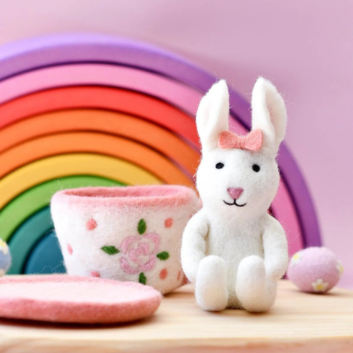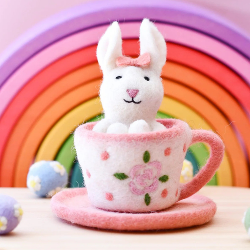Tara Treasures Felt Rabbit in Tea Cup 3pcs Children's Easter Gift Pretend & Imaginative Play 3yrs+
