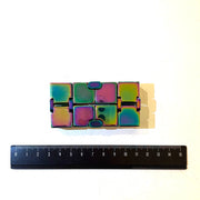 This oil slick metal infinity fidget cube is awesome. Quite magical in how it endlessly folds on itself.  Comes in a stunning rainbow storage box.