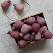 This set of thirty-six little pineapples in varying shades of purple can also be used for developing mathematical skills and thinking, and are useful as counters. Handmade from sustainably sourced wood and finished with non-toxic colours.  Grapat Mandala sets are a perfect addition to imaginative play, role play, creative picture making and story telling. The possibilities are inspiring.