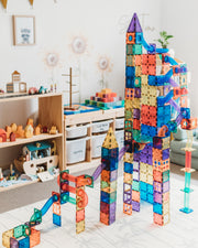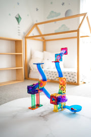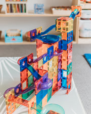 This 85 piece sets includes everything you need to build a complete run or pair with magnetic tiles to create massive ball mazes.