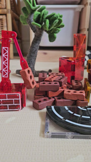 • What's Included: 32 magnetic pieces, including 6 Road Squares, 4 Road Quarter Circles, 10 Squares, 8 Rectangles (4 Bricks, 4 Cautions), 1 Spinner, 1 Wheeled Chassis, 2 Extendable Cranes