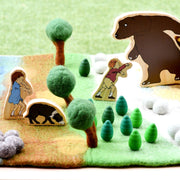 Our large Bear Hunt playscape is designed for small peg dolls, animal figurines, loose parts pieces and your own bear in small world play.  Felt Bear is sold separately