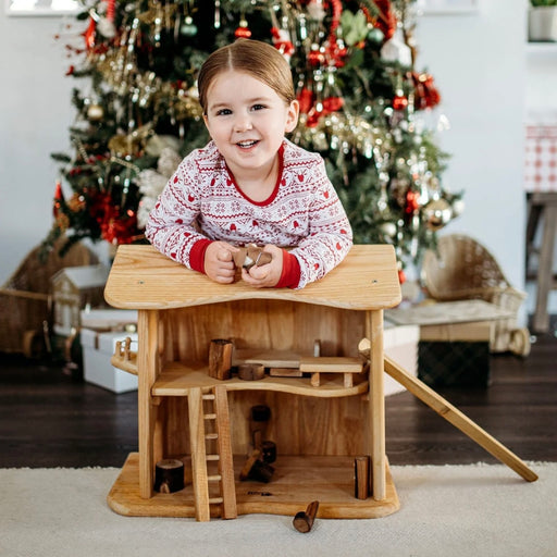 Qtoys Two Story Cottage House Rubberwood Pretend and Imaginative Play 2yrs+ (Bulky Shipping)