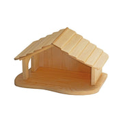 This handcrafted wooden stable is an adorable addition to any dollhouse, complete with a roof that opens up and a slide-out nativity scene – perfect for your little horse-drawn figures!