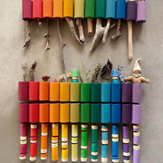 Made up of different types of tubes, some for use as a kaleidoscope, others as a possibility of construction and creation of imaginary worlds. Some can be seen as trees, buildings, cars … It allows the development of logical-mathematical thinking through classification, grouping and association of elements according to their colour and shape.