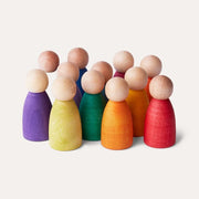 “Nins” mean “children” in Spanish. These 12 simple peg dolls are made with love and sustainable materials and form the basis of so many aspects of play, from imaginative and small world play, to story-telling, and to learning through play in counting and sorting.  Their simple and unstructured form allow children to imagine the expression, gender and roles supporting their own emotional development and understanding of the world and people around them.