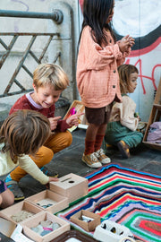 Grapat Toys is a small family run business in the beautiful region of Catalonia in northern Spain, the passion of owners Casiana and Jordi.  Made with the greatest love, care and attention to detail, Grapat toys are known for their loose parts which encourage children to play and discover freely using their own imagination.  Inspired by Waldorf principles, Grapat toys reflect the beauty of the earth and are made from locally-sourced sustainable timbers and finished with water-based dyes.  Grapat use all recycled and sustainable materials in their packaging.