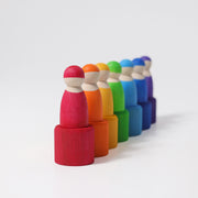 Through their different colours and different types of wood, the Rainbow Friends reflect our wonderful diverse world as well as celebrating everyone’s uniqueness. Each one of our little hand-painted wooden figures has a different look and individual wood grain. These happy little wooden figures, made from different types of wood from trees indigenous to central Europe, are gender neutral. With no specific facial expression, they can be either sad or happy. With their simple appearance they spur on the child’s imagination instead of restricting it by offering too much detail.