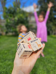 These coloured wooden (FSC Pine) movement blocks are made to encourage and strengthen movement and gross motor skills. Get moving by rolling the blocks to see what action you can do and for how long! 3 blocks have 6 different movements - 18 movements in total and 1 block has 6 different time frames.
