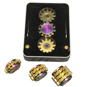 Comes in 2 colour options - black or oil slick. Comes in a gorgeous metal window display tin.  Please note each OIL SLICK varies in colour as they are all unique. Each side of the cog is even different!