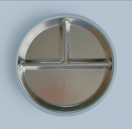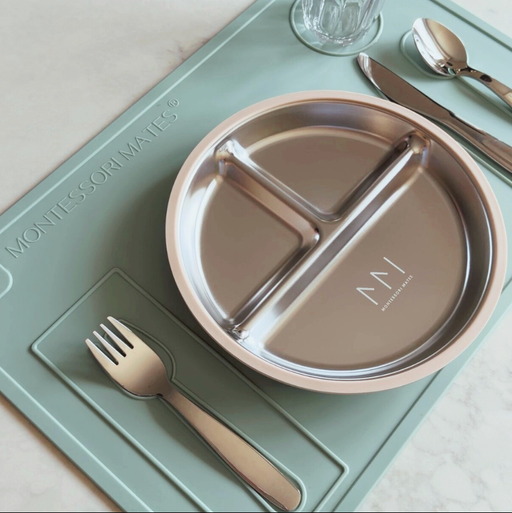 Montessori Mates Kids Stainless Steel Divided Plate with Lid 2 Colours Options Baby Practical Life Materials Baby Gifts Idea 6m+
