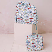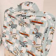 Take lunch to new heights with our Cloud Cruiser insulated lunch bag – the perfect companion for little pilots on the go! Featuring bold vintage airplanes on a soft blue check background, this bag keeps food cool and adventures even cooler.