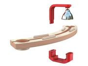 This set includes 15 distributor blocks, one rotary tower, 4 small curve rails, one large curve rail, one spiral twist, 6 height adjusters, 4 stabilizer rings, 8 accelerators, 2 hole shutters, 2 transparent stairways, 3 bells, 3 universal clamps, 50 marbles and one catcher