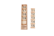 Using the Teen Boards, the child explores the numbers 11-19. Bead quantities are created from the 10 bars and coloured bead stair in the Teen Bead Box (sold separately) and are associated with the corresponding numeral on the Teen Boards.