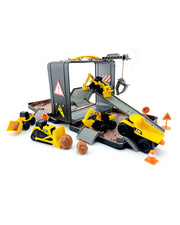 The Cat Little Machines Store 'N Go Playset allows little builders to bring the construction site with them wherever they go. The durable classic tin storage case easily transforms into a multi-level worksite. Open the tin case to reveal a playset complete with 5 Little Machines™ vehicles, accessories such as road signs, cones, and boulders, magnetic decals, ramps, and a working crane! With over 10 pieces included, this playset is sure to inspire your little builders imagination. When playtime is over, simply place everything back inside the tin carrying case for convenient storage. Real Cat machines are known for their high quality, these toys are no different, built to withstand the elements and perfect for indoor or outdoor play.