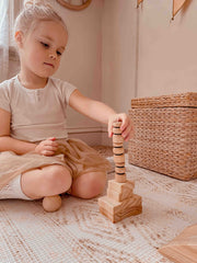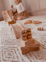 As children build and investigate rolling a variety of objects they gain a deeper understanding of foundational maths and science concepts (STEM). There are so many opportunities for children to practise problem solving, engage in open-ended play and investigate engineering concepts. This natural learning resource is made from natural pine timber and every piece is unique. This set can also be added to loose parts or combined with blocks or our Bamboo Construct & Rolls set for further building extensions.