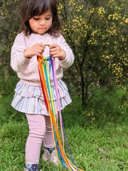 Using all the colours of the rainbow and a bell for music, your child will have many hours of creative and imaginative play twirling and streaming the ribbons as they move.