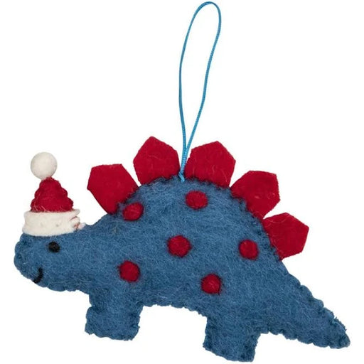 Pashom Christmas Tree Decor - Felt Blue Dinosaur Stegosaurus with Hat Dinosaur toy Pretend & Imaginative Play Toys Dinosaur and Dragon Theme Christmas Range 3yrs+