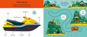 Discover different vehicles in this series of interactive board books with easy-to-use moving parts. Learn vehicle vocabulary with simple first words, clear diagrams and helpful text prompts to encourage discussion. Then trace the transport around different tracks with a moving counter on every spread and the cover. In this book discover a yacht, speedboat, jet ski, and a fishing boat.