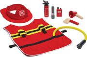 Firefighters are our everyday heroes! This play set invites children to explore the daily duties of a real fire fighter. The set features an adjustable helmet and jacket, megaphone, fire extinguisher, water hose, flashlight, hatchet and walkie talkie. Tackle nearby emergencies and discover what it's like to be a real fireman!