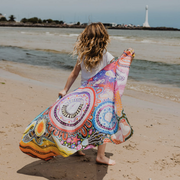 Brooke’s interpretation of ‘Wani-Wani Watina’, which means ‘To swim side by side’ in the Kalkadoon language, is a beautiful and vibrant addition to the Play Silkies collection. This stunning silk scarf is sure to be a popular choice among kids and adults alike.