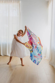 Made from the same high-quality Mulberry silk that Play Silkies is known for, this silk scarf is a must-have for any play space. The scarf’s stunning colours and design will spark imaginative play and inspire kids to explore the world around them.