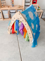 Intentionally designed to be managable for the little people in your life, these Jumbo silks are made to fit most pikler climbing triangles.