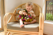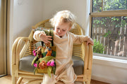 This Gumnut Playscape bag is designed with eucalyptus leaves, gumnuts and gum blossoms. There are also pockets for your little one to place his or her favourite bush animal finger puppets in them. This pretty felt bag enhances imaginative play, and has a main compartment that is fastened with a zip.