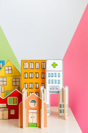 The Happy Architect Town includes 26 wooden pieces comprising of a fire station, supermarket, post office, police station, jail, school and so much more. This construction set is made up of varied sized pieces that are easily slotted together and printed using non-toxic heat transfer technology to ensure it lasts for years to come.