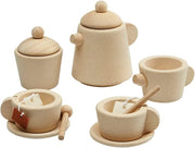 The PlanToys Tea Set includes 13 pieces including 1 teapot, 1 bowl of sugar, 1 milk jug and 2 cups, saucers, teaspoons and tea bags. It is made from environmentally friendly and sustainable rubberwood. Great for imaginative and creative play.