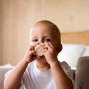 My 21 month old daughter loves this wood feel tea party set and favors it over her plastic set. I think it must be the very satisfying solid heft of the cups, lids and teapot. The lids especially sit very solidly and easily gripped. Expensive but beautifully designed and made. Will last for many years of play.