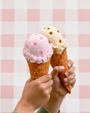 Indulge your child's imagination with our Felt Ice Cream Set that includes 2 waffle cones and 9 scrumptious ice cream scoops in an array of mouthwatering flavours. Perfect for sharing with friends or serving up a sweet feast in pretend play, this set promises to be a favourite in your child's play kitchen.