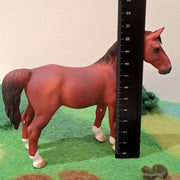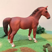 CollectA’s Hackney Stallion Chestnut is sculpted in an alert standing position, looking ahead. His muscular body is painted predominantly dark chestnut, with a white star on his forehead and white socks on his feet. His mane and tail are dark and perfectly groomed, making this strong, carriage horse ready for the show.