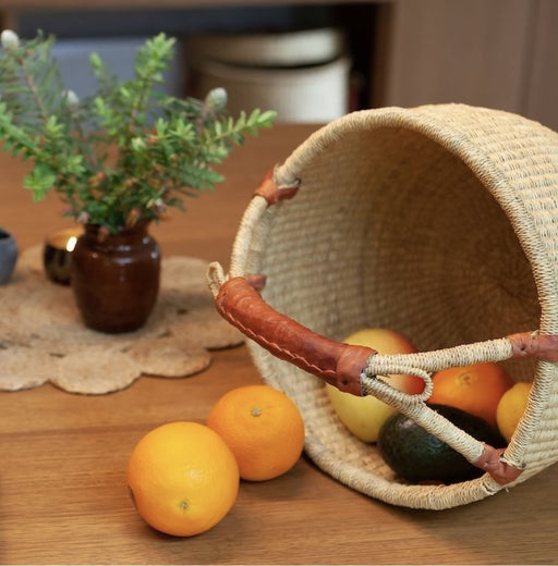 Medium Round Bolga Basket with Leather Handle Natural 28-34cm